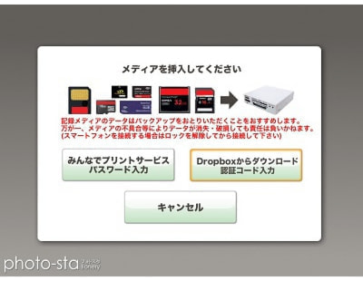 受付ソフトのメディア挿入画面で「DropBoxからダウンロード 認証コード入力」をクリックする。