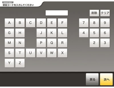 認証コード入力画面が表示されますので、メールで受信した認証コードを入力します。